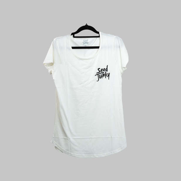 This Seed Junky Women’s Short Sleeve Shirt offers a regular fit with a lightweight, 100% combed cotton fabric for ultimate comfort. Designed with a scoop neck, capped sleeves, and a curved hem, it’s both stylish and easy to wear. The shirt is preshrunk to minimize shrinkage and features double needle hems for added durability.